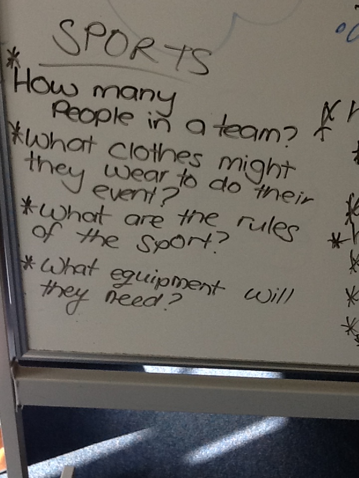 We had a few criteria to think about and then we had to share our new sport to the class.